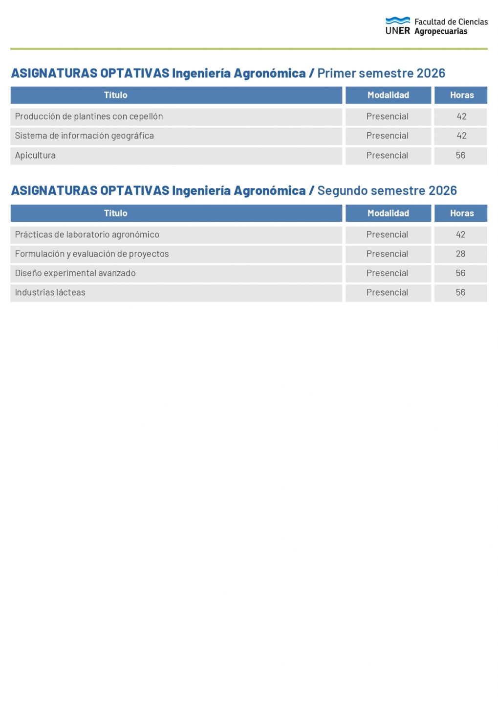 La Secretaría Académica informa que ya se encuentran disponibles los detalles correspondientes a la oferta de asignaturas optativas y cursos correspondiente a la Formación Complementaria, según lo establecido por los actuales planes de estudio.